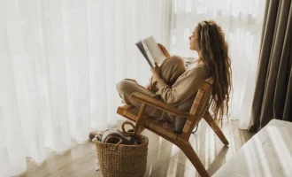 - پرده های رومی ضخیم را با لاله های شفاف سبک ترکیب کنید.