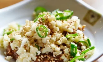 - 2-3 قاشق غذاخوری آب اضافه کنید. ظرف باید با فیلم چسبناک یا درب مخصوصی که سوراخی برای خروج بخار دارد پوشانده شود.