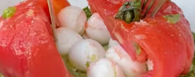 - گوجه فرنگی ها را با مینی موزارلا یا بوراتا پر کنید.